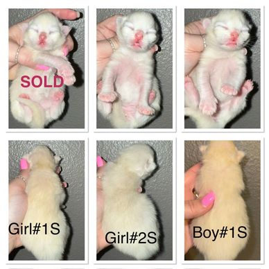 These kittens are absolutely adorable all are blue bicolors or blue points just like Mom or Dad are. Jade has very sweet cats with great personalities. Reach out if you are interested and put you deposit down.
